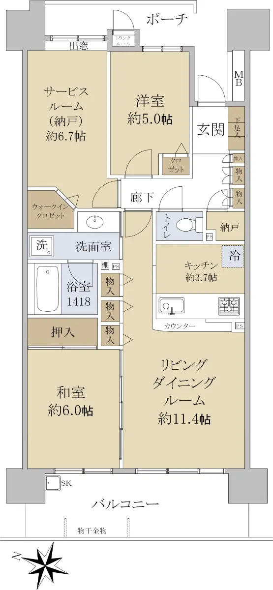 | 間取り | 2SLDK ※Sはサービスルーム(納戸) |