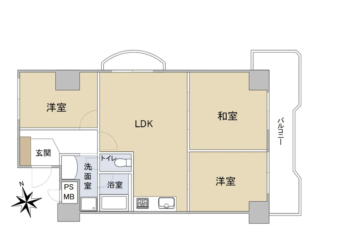 ・北、東、西の3方向角部屋