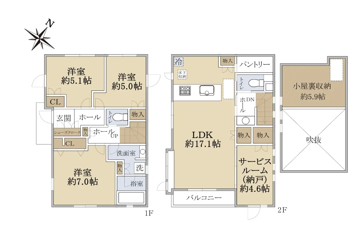 | 間取り | 3SLDK ※Sはサービスルーム(納戸) |