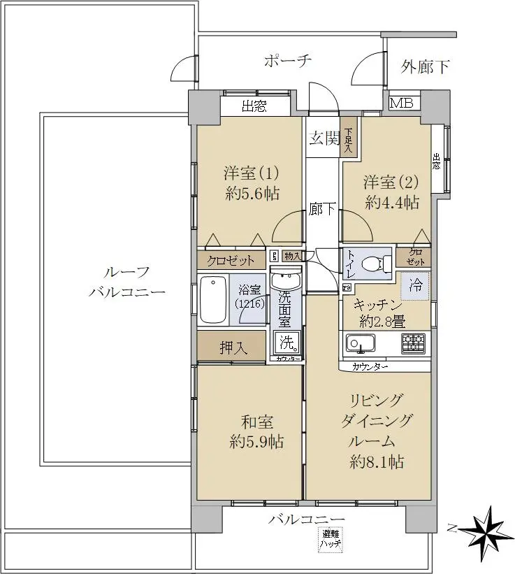 | 専有面積 | 58.65m2(壁芯) |