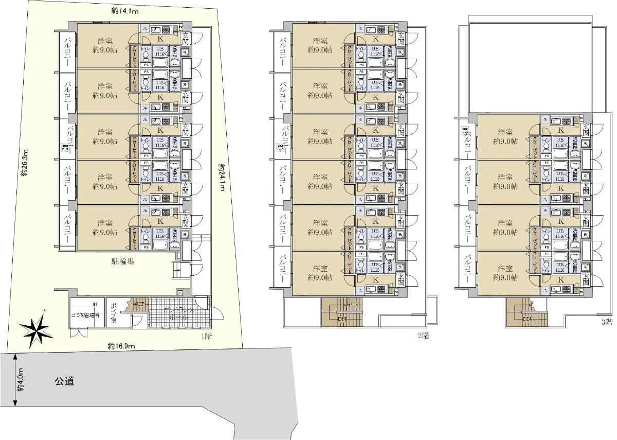 総戸数は15世帯、1戸あたり28.34uで全て同じ広さになります。モニター付きオートロック、風呂トイレ別、3口ガスコンロ設置済みの1棟マンション、徒歩5分以内に、スーパー、コンビニもあります。
