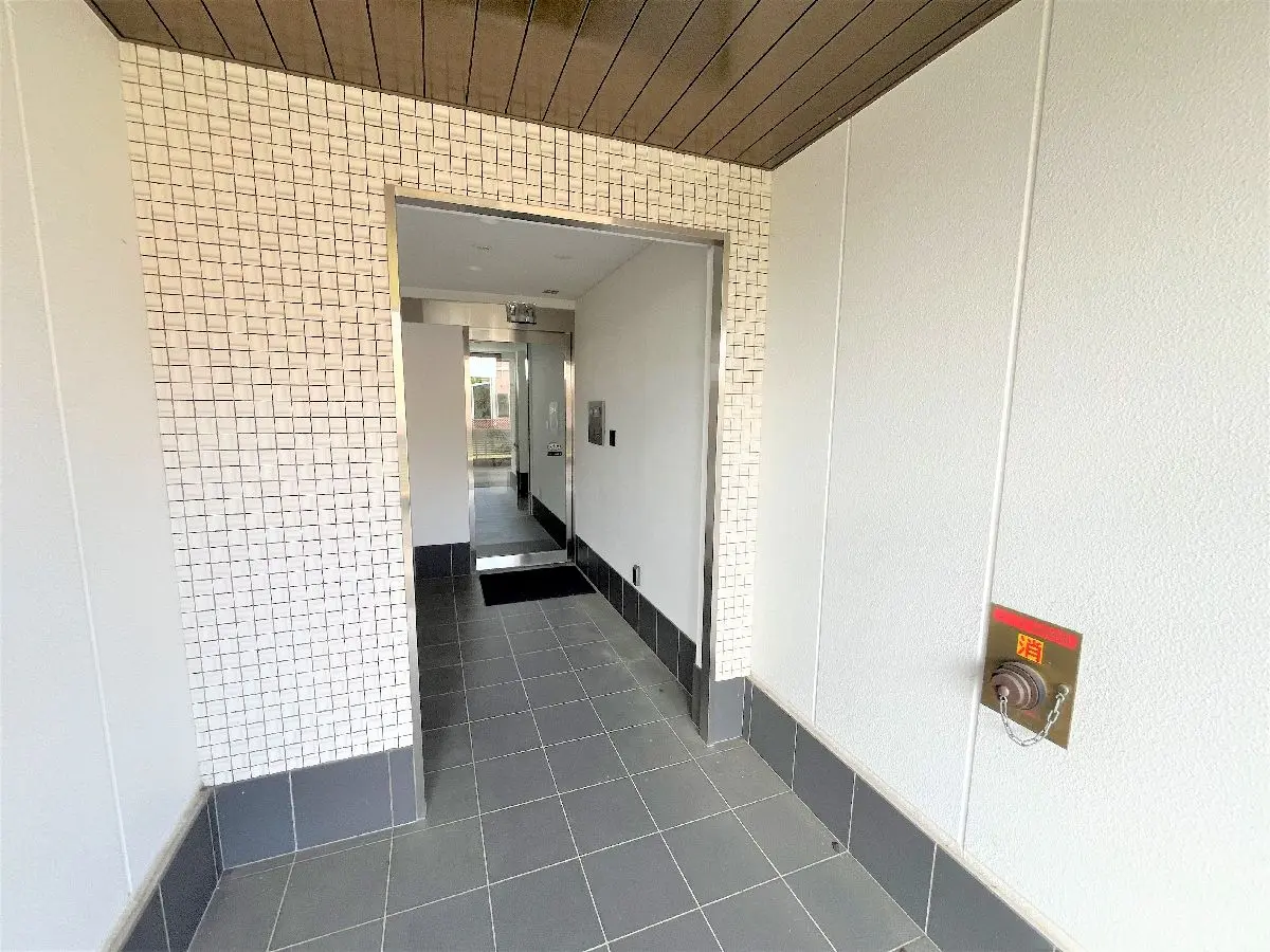 白い外壁ですっきりとした外観の建物です。周囲に高い建物など無く、陽当り良好!