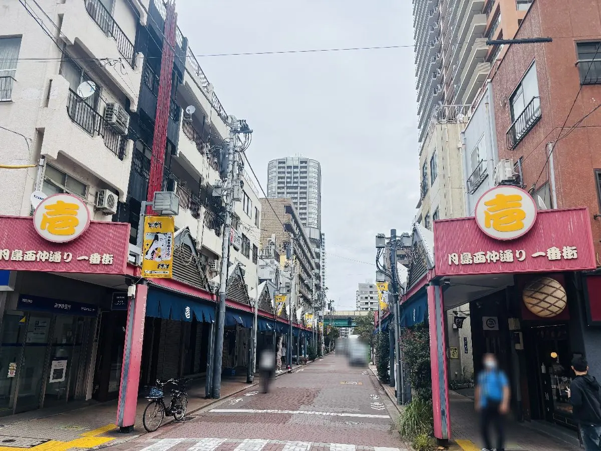アーケードがあり趣を感じる西仲通り(月島もんじゃストリート)まで約60mです。