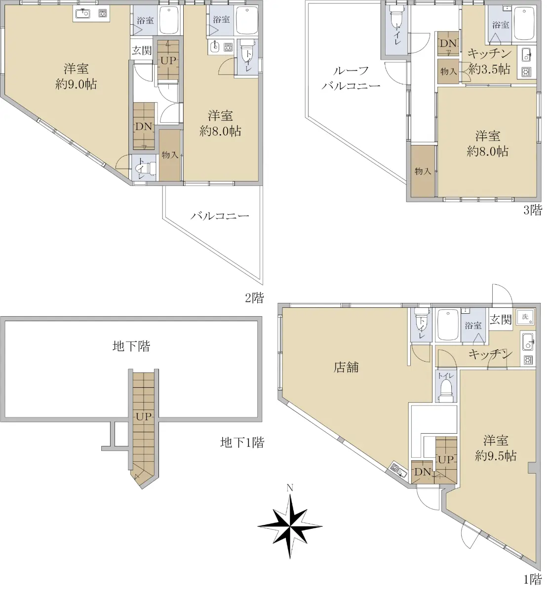 地上3階地下1階建て 軽量鉄骨 |