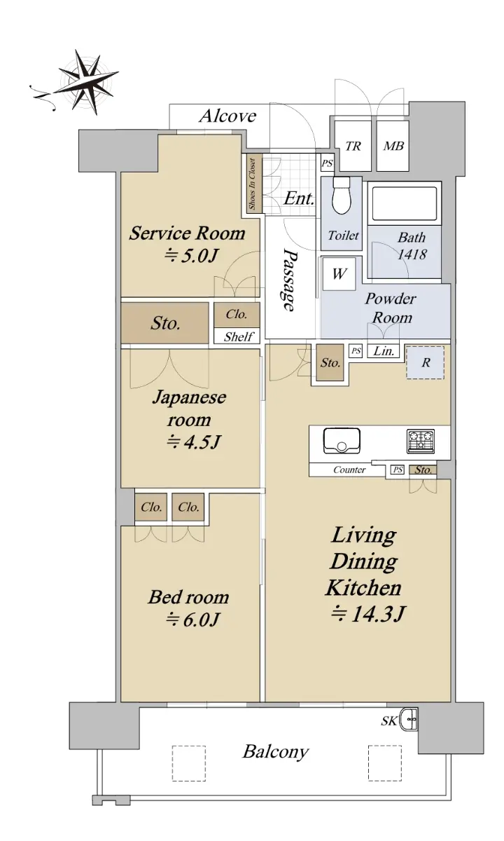 | 間取り | 2SLDK ※Sはサービスルーム(納戸) |