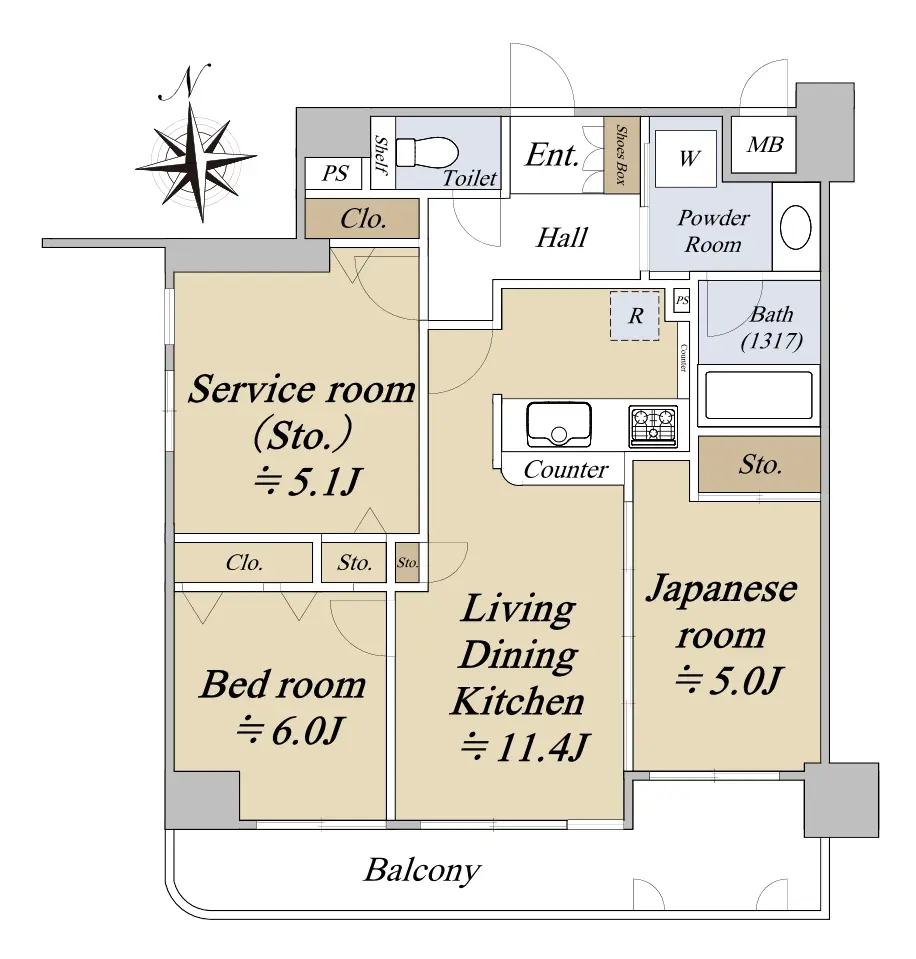 | 間取り | 2SLDK ※Sはサービスルーム(納戸) |