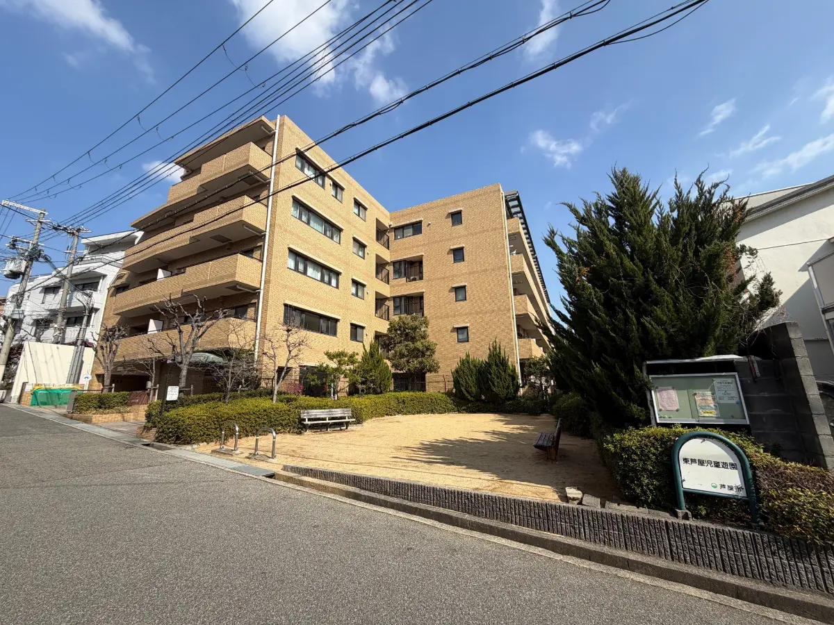 本物件は、芦屋市東芦屋町に建つ、鉄筋コンクリート造地上5階建て、総戸数33戸、1998年2月建築のマンションで