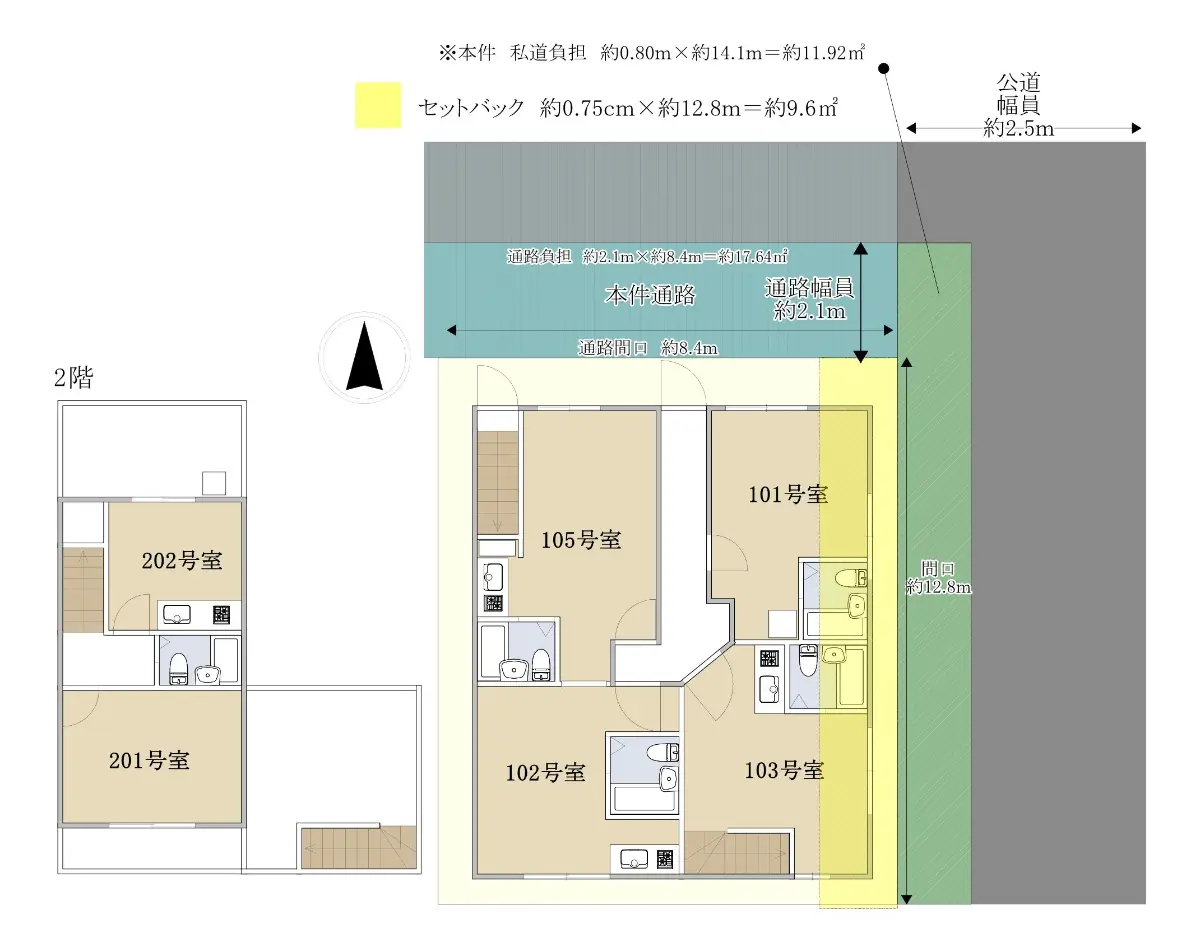 接道状況 | 一方道路・東2.5m(公道)接面12.8m |