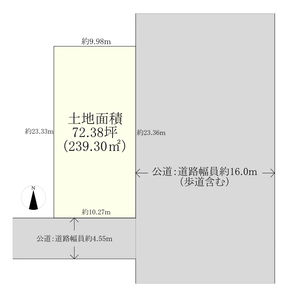 | 接道状況 | 角地・東16m(公道)接面23.3m/南4.5m(公道)接面10.2m |