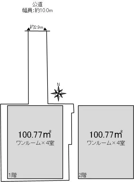 | 接道状況 | 一方道路・北10m(公道)接面2.9m |