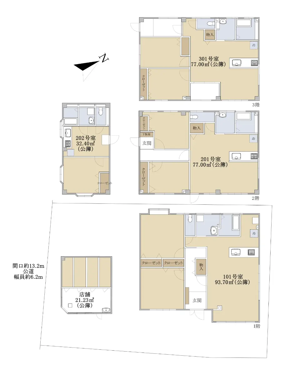 | 接道状況 | 一方道路・南西6.2m(公道)接面13.2m |