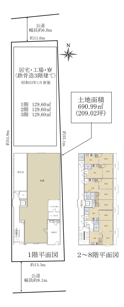 | 土地面積 | 690.99m2(約209.02坪)※公簿 |