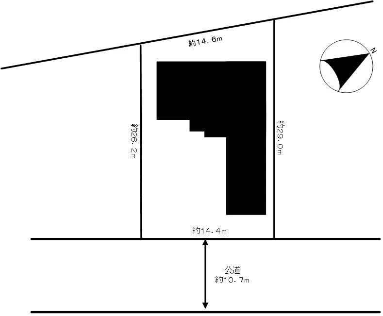 | 接道状況 | 一方道路・南東10.7m(公道)接面14.4m |