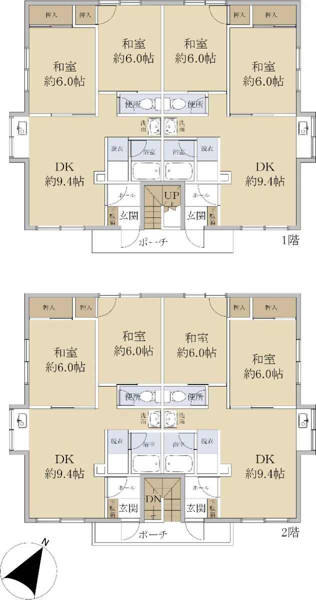 本物件は2DK×4室、2階建の物件です。
