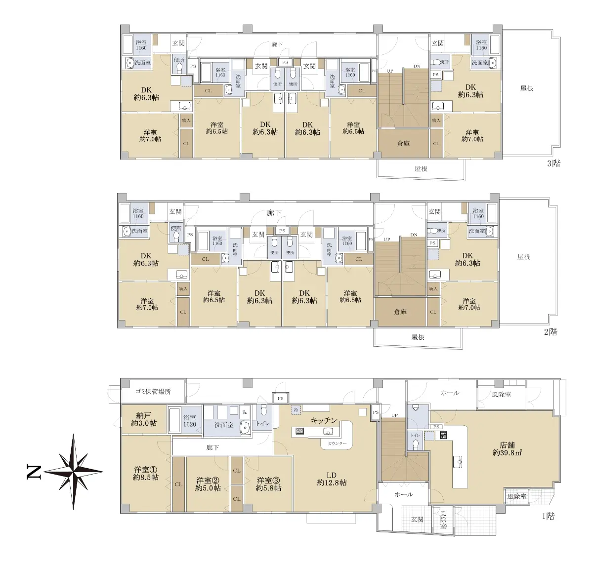 地上3階建て 鉄骨造 |
