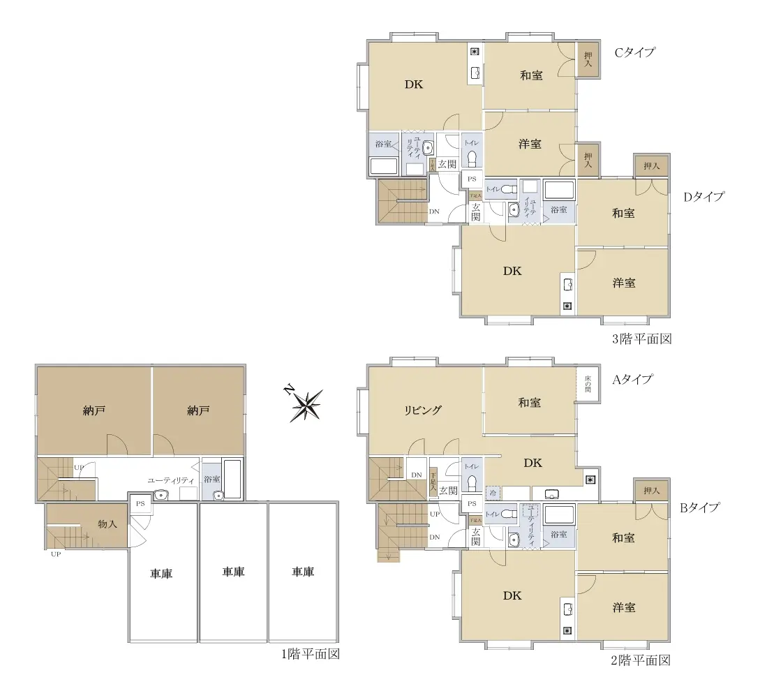 ▼間取り3LDK×1、2DK×3