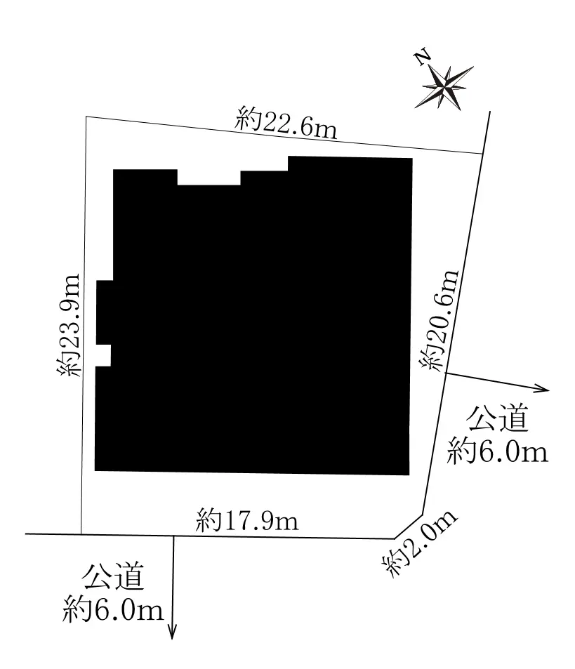 | 接道状況 | 角地・南西6m(公道)接面17.9m/南東6m(公道)接面20.6m |