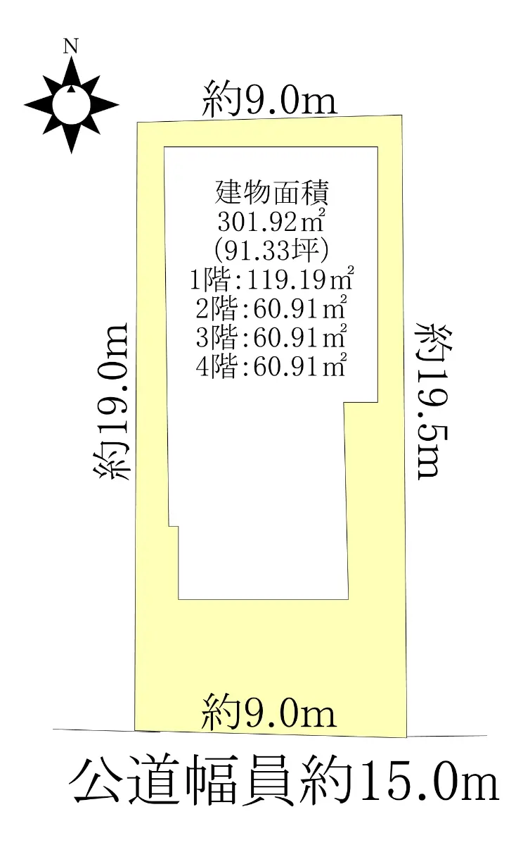 | 接道状況 | 一方道路・南15m(公道)接面9m |
