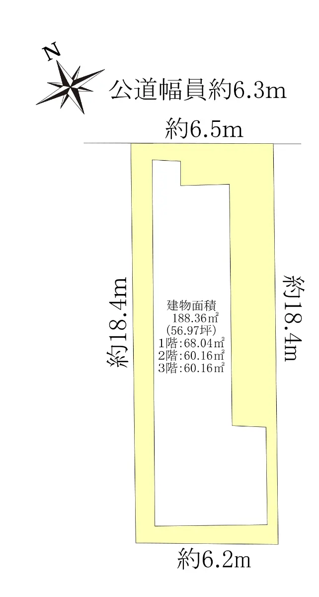 | 接道状況 | 一方道路・北東6.3m(公道)接面6.5m |