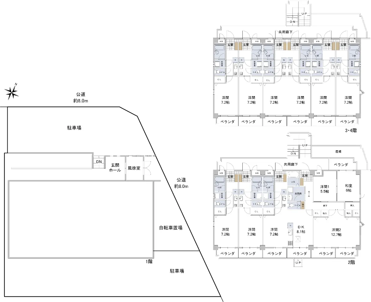■1階住居×4戸 2階住居×6戸 3階住居×6戸
