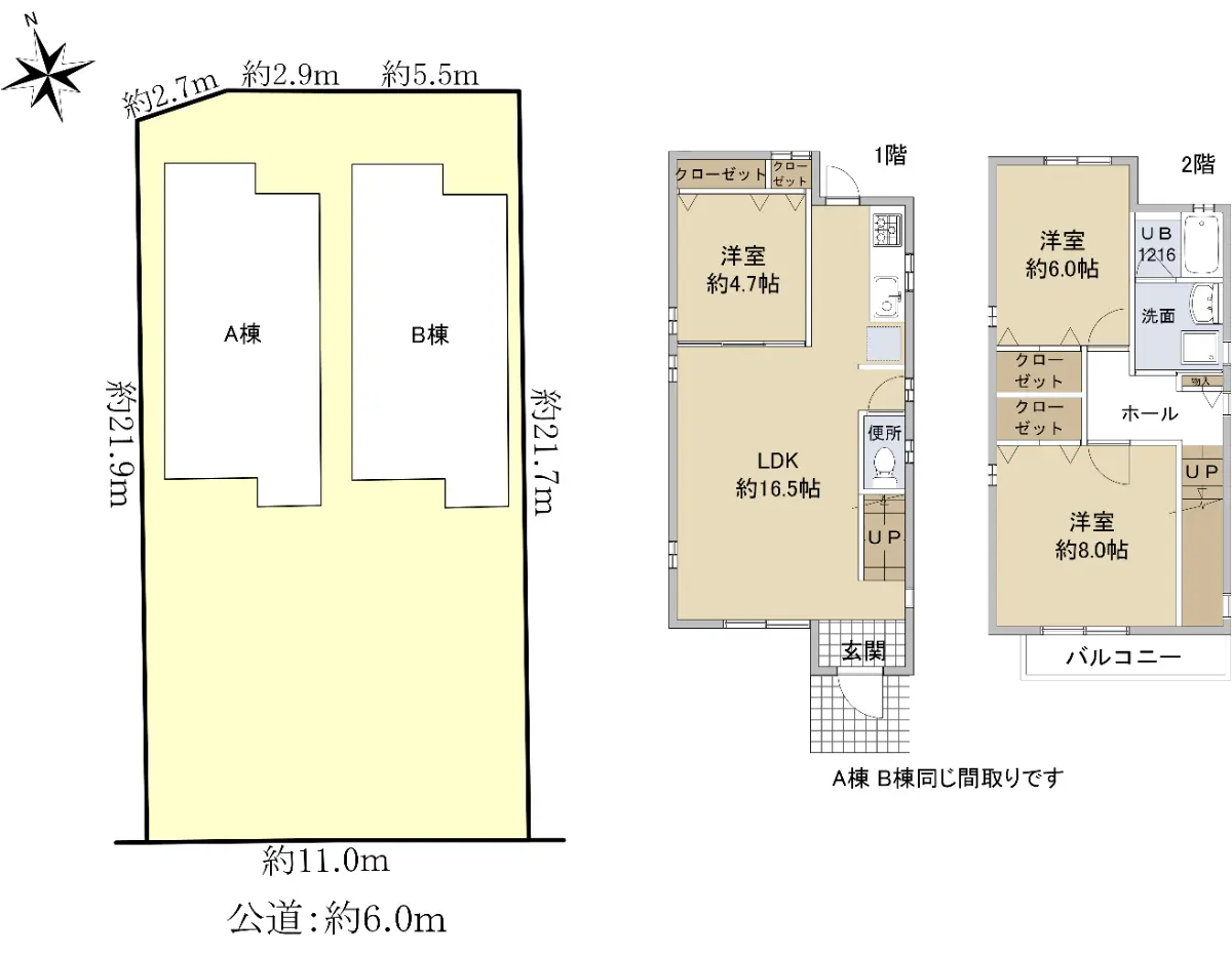 ◎建物面積:A棟 81.14u B棟 81.14u 合計 162.28u(49.08坪)
