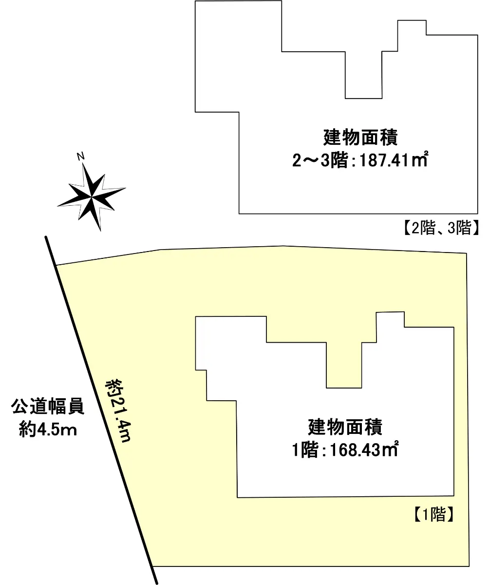 | 接道状況 | 一方道路・西4.5m(公道)接面21.4m |