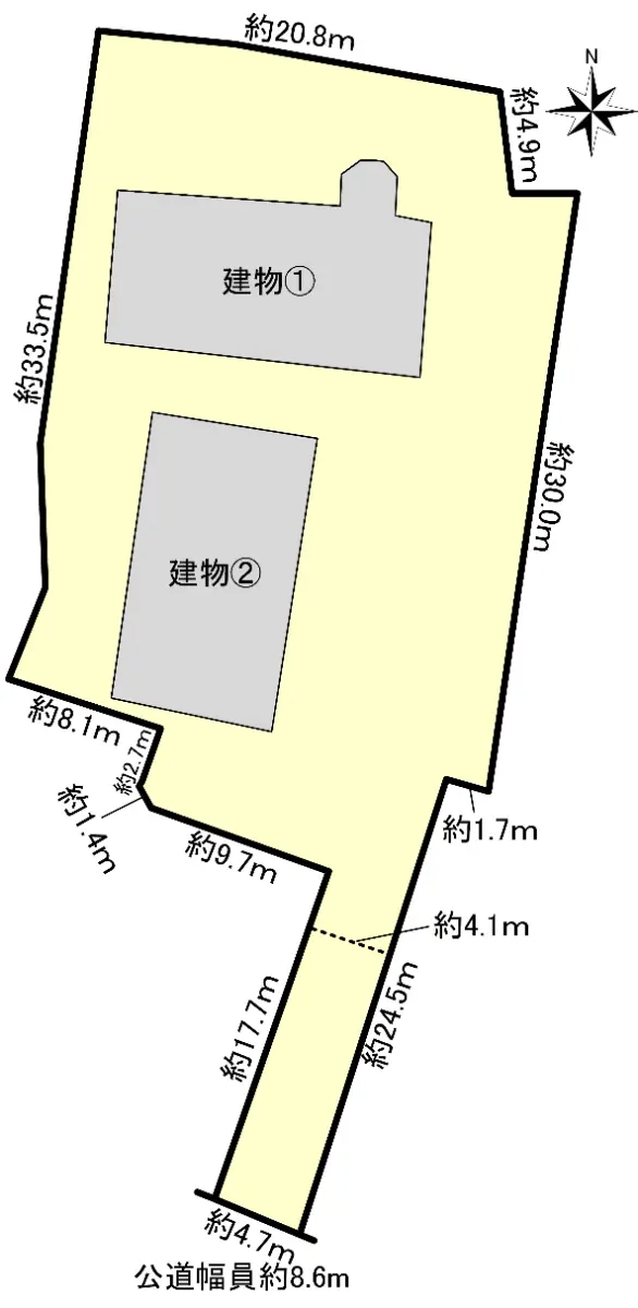 | 接道状況 | 一方道路・南8.6m(公道)接面4m |