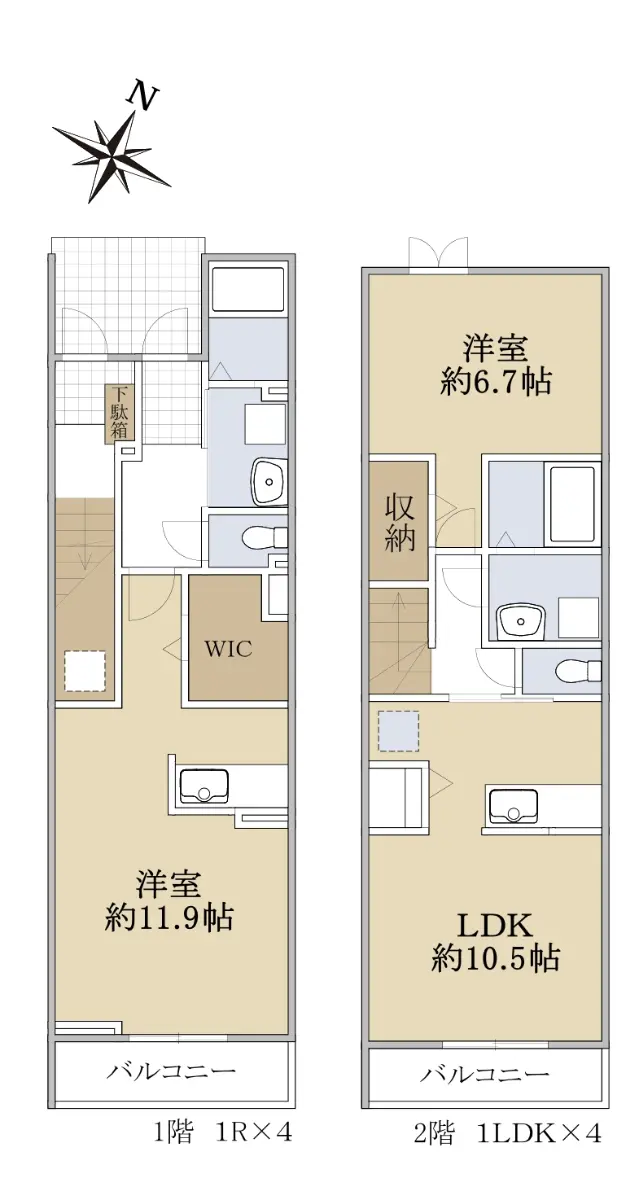 2階:1LDK×4(洋室約6.7帖・LDK約10.5帖)