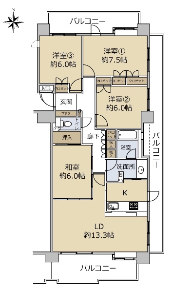 • 南向き(南西・南東含む)バルコニー方向が南向き(南西・南東含む)