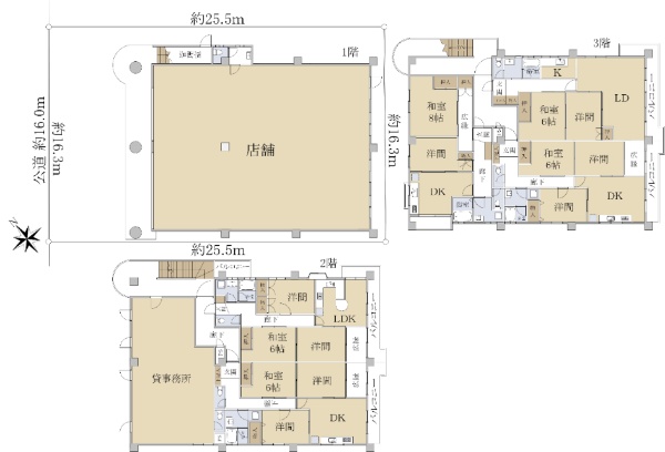 ■土地面積125.77坪 ■鉄筋コンクリート造3階建、店舗1・事務所1・住戸5