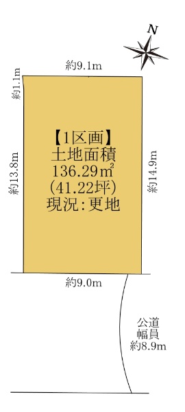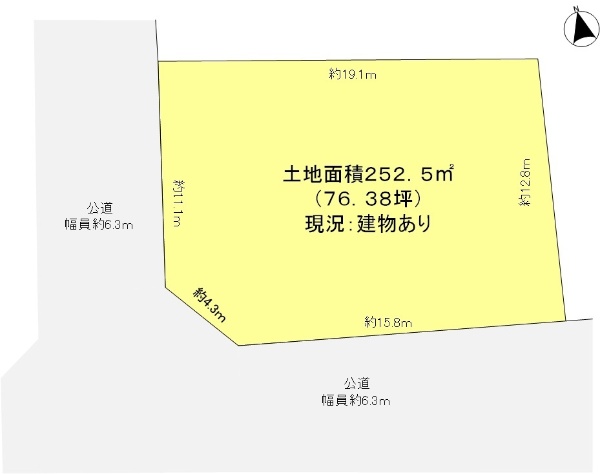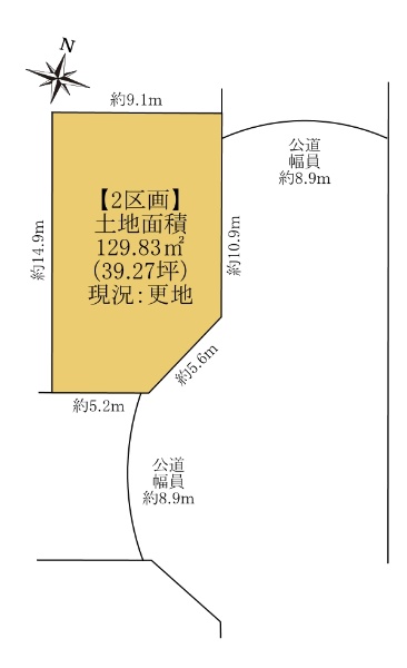 土地面積83.57坪!南東道路公道約5.9m、北東道路公道約9mに面する物件です。
