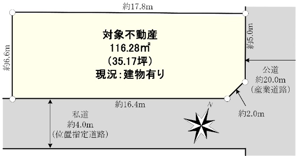 【産業道路沿い】〜整形地:角地(北東・南東):116.28u〜