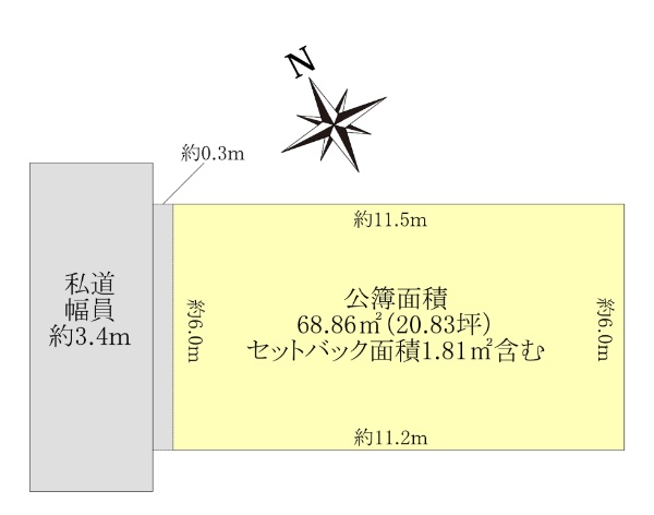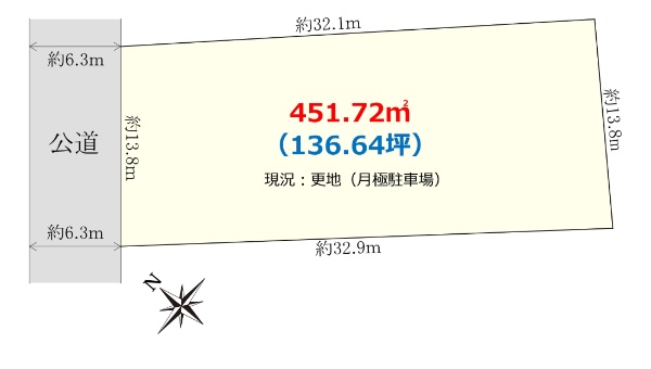 ◇北側公道6m整形地 ◇お好きなハウスメーカーで建築可能です。
