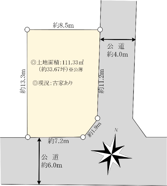 幅員4mの公道に接道 整形地