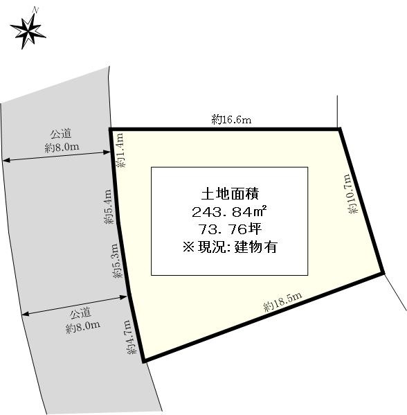 土地面積243.84u(73.76坪)整形地 〜建築条件付土地ではございません〜