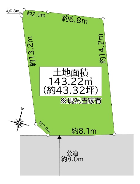 ■土地面積:143.22u(約43.32坪) ■南東向きにつき日当たり良好