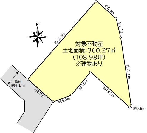 土地面積360.27u(108.98坪)〜建築条件付土地ではございません〜