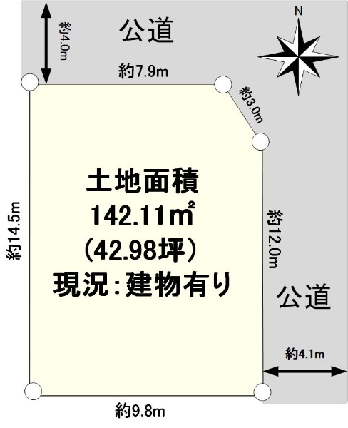 〜土地面積142.11u(42.98坪)、北東角地のため開放感あり〜