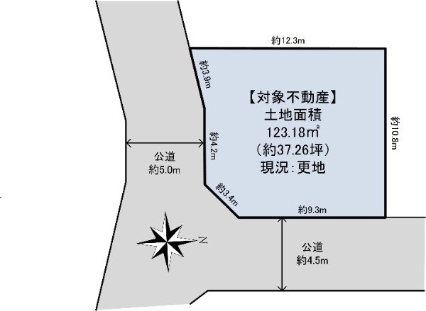 ■二方道路に面し、陽当り良好! ■土地面積:123.18u(37.26坪)の整形地