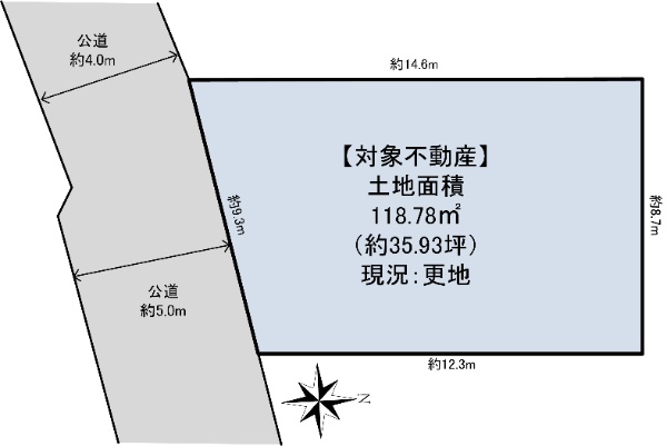 ■南向き道路に面し、陽当り良好! ■土地面積:118.78u(35.93坪)の整形地