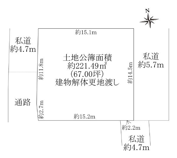 ■土地面積約67坪 ■更地渡し ■東西両面道路+南側一部接道