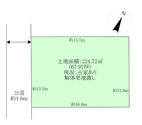 〜土地面積:224.72u(67.97坪)・解体更地渡し〜