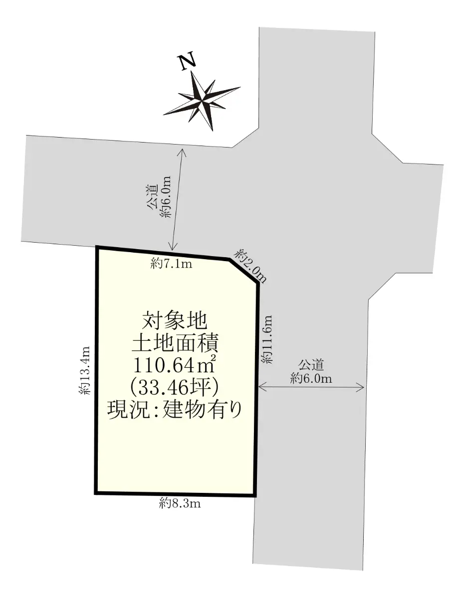 | 接道状況 | 角地・北6m(公道)接面7.1m/東6m(公道)接面11.6m |