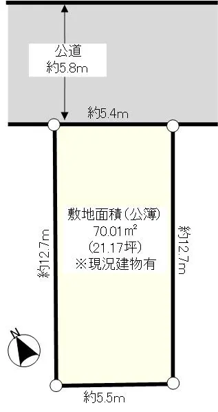 | 接道状況 | 一方道路・北東5.8m(公道)接面5.4m |