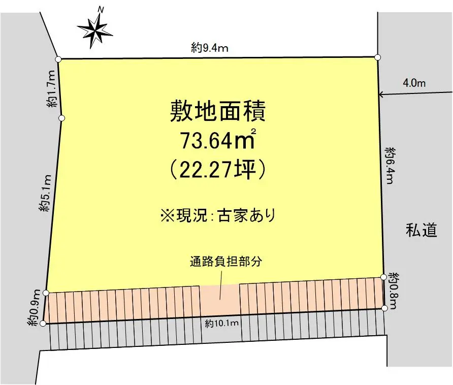 | 接道状況 | 一方道路・北東4m(私道)接面7.2m |
