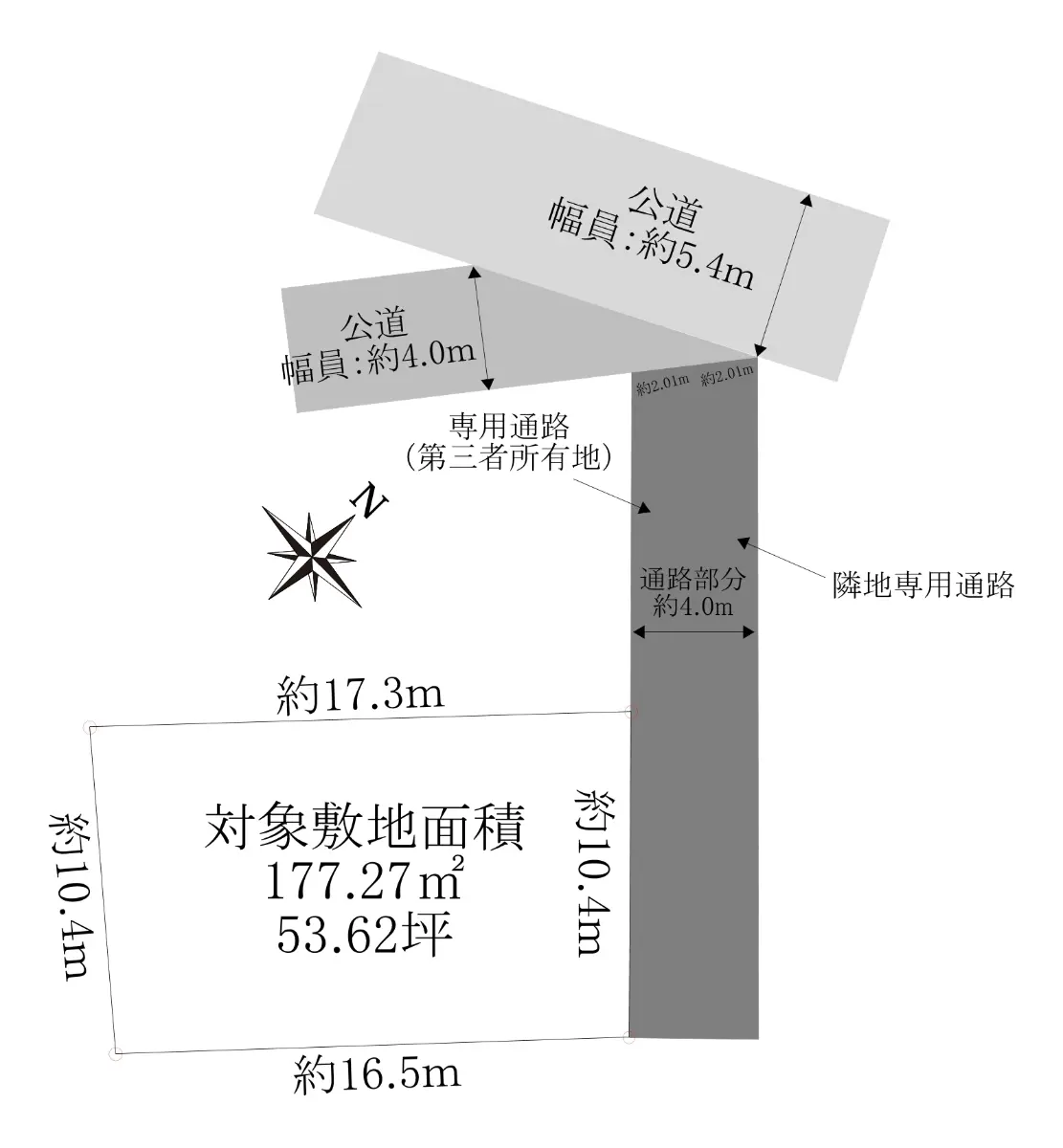 | 土地面積 | 177.27m2(約53.62坪)/他に私道負担:33.00m2あり |
