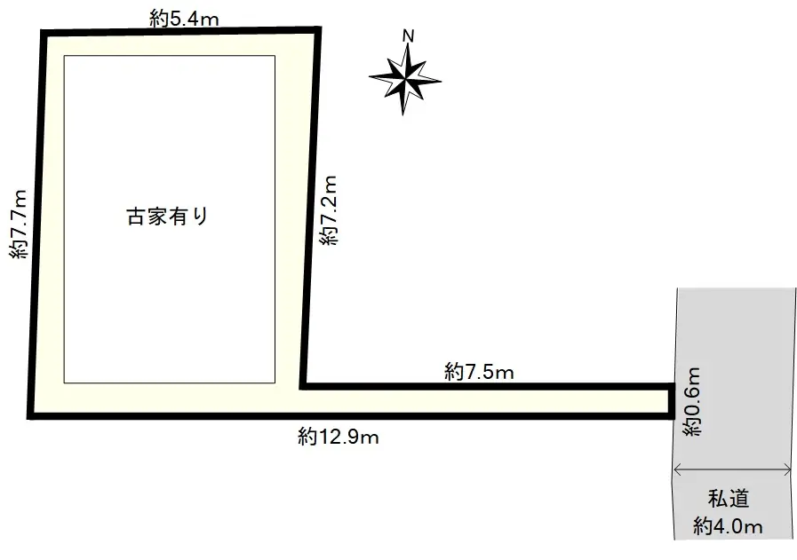 | 接道状況 | 一方道路・東4m(私道)接面0.6m |