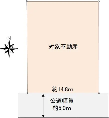 | 接道状況 | 一方道路・南5m(公道)接面14.8m |