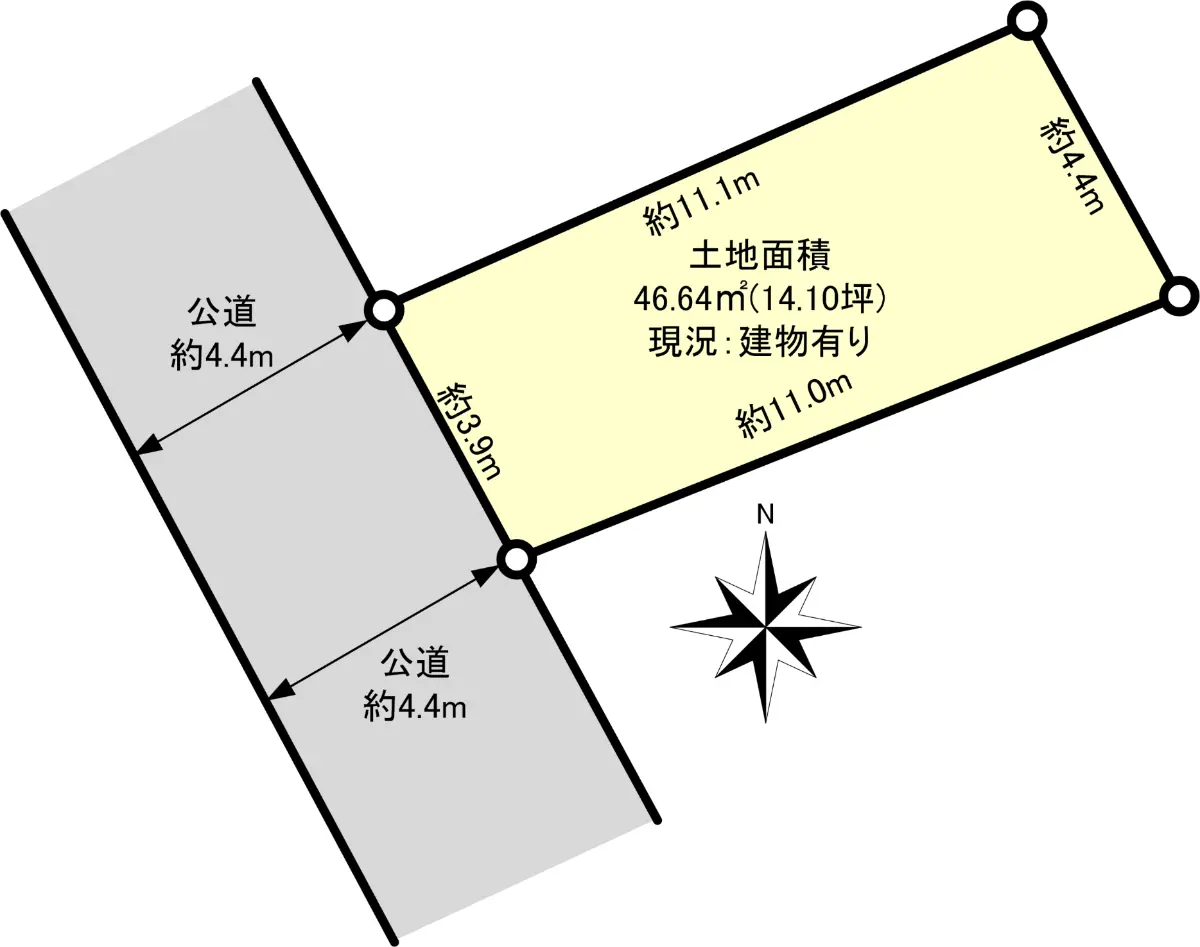 | 接道状況 | 一方道路・南西4.4m(公道)接面3.9m |