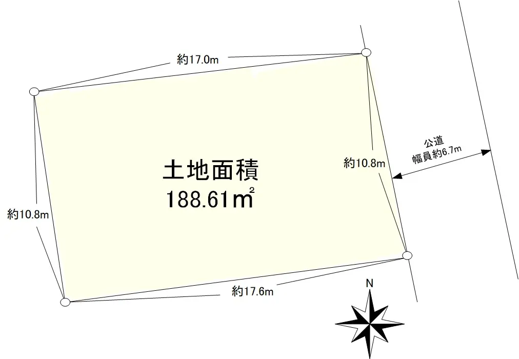 | 接道状況 | 一方道路・北東6.7m(公道)接面10.8m |